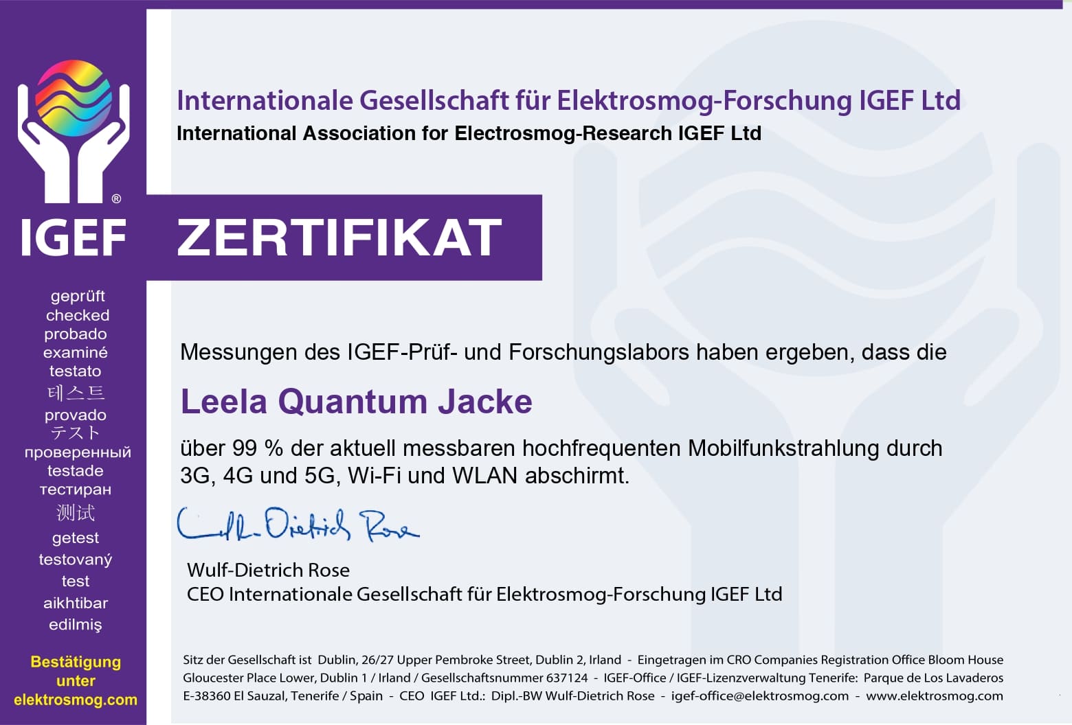 Im Folgenden finden Sie das englischsprachige Gutschten auf der Plattform des Internationalen Fachverbandes für Quantenenergetische Technologie & Frequenzmedizin (IFQTF). Wir arbeiten an der deutschsprachigen Version.