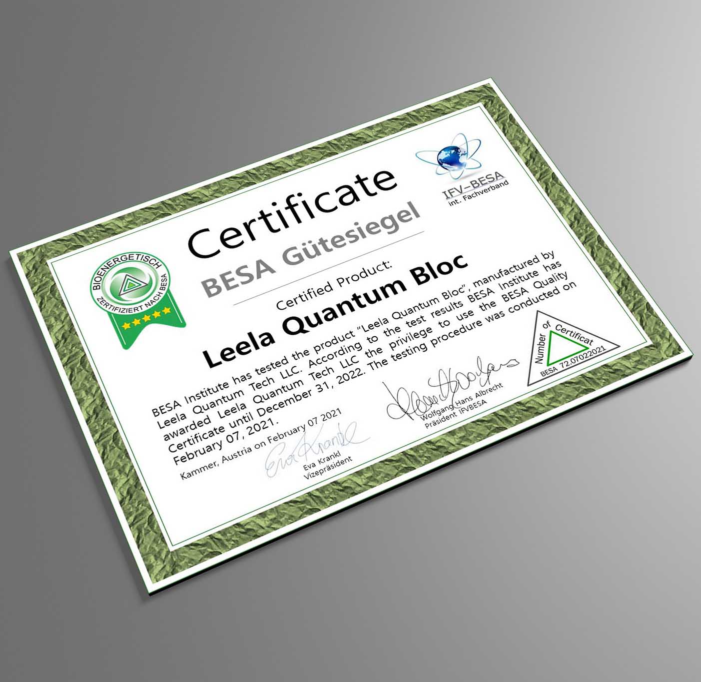 Das BESA-Gütesiegel steht für höchste Standards und wird vergeben vom österreichischen BESA-Institut, dem führenden europäischen Forschungs- und Prüfinstitut zu den Themen Biofeedback, Bioenergetik und bioenergetische Systemanalyse. Ermittelt werden die Auswirkungen von Lebensmitteln und Produkten auf das biophysikalische und energetische System des Menschen nach einer empirisch-technischen Methodik durch das BESA-Diagnoseverfahren, das als weiterentwickelte Deka-Voll-Methode angesehen werden kann. Dabei wird die bioenergetische Rückkopplung eines Menschen direkt erfasst und messbar gemacht. Produkte, die das BESA-Gütesiegel erhalten, haben positive und wohltuende Effekte auf die Vitalität, das Wohlbefinden und die persönliche Weiterentwicklung.