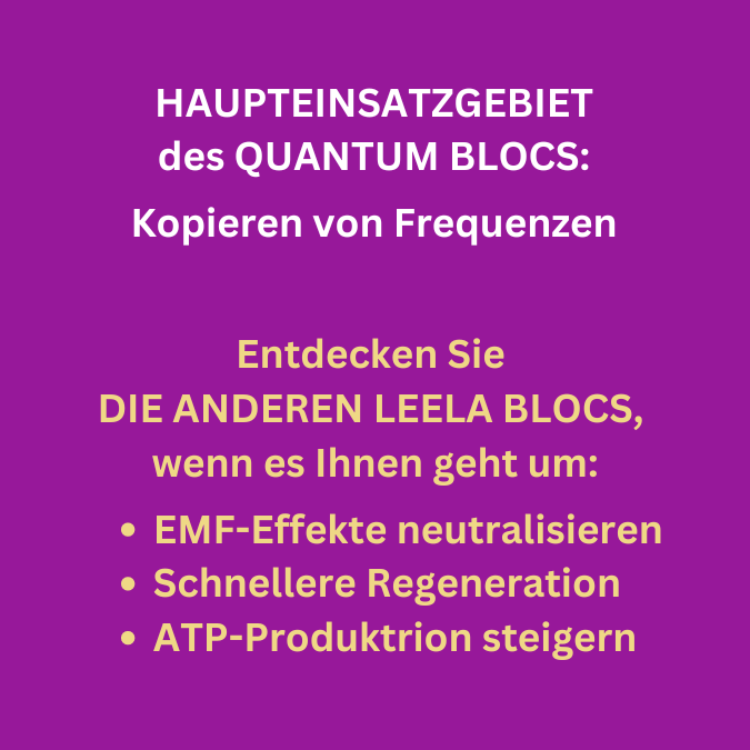 Important note: The Infinity Bloc and Grand Bloc have stronger quantum fields, resulting in a significantly larger radius and better EMF harmonization. This allows for faster and more powerful charging of objects and food with quantum energy. Even the smaller Travel Bloc has a stronger quantum field, making it perfect for travel or for use in the car.